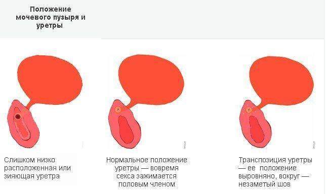 Так, например, наличие воспалительных явлений во влагалище устраняется с помощью местных противогрибковых и антибактериальных препаратов. Если обнаружено венерическое заболевание, специалисту требуется лечение обоих партнеров. При анатомических особенностях мочевой системы урогинеколог может рекомендовать хирургическое лечение – перенос уретры т.е. транспозиция уретры (выше над влагалищем), при необходимости хирург иссекает остатки девственной плевы, которые «растягивают» уретру.
